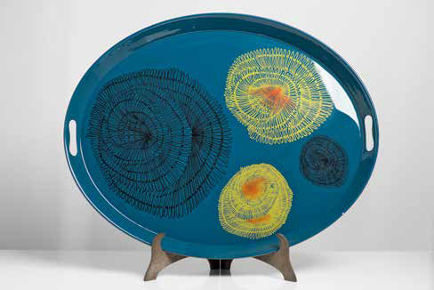 PIERO FORNASETTI Milano 1913 – 1988 VASSOIO IN LATTA SMALTATA, DECORATO CON MOTIVO MADREPORE, ANNI ‘60 cm 70x55. Bibliografia: B. Fornasetti, L’Artista Alchimista - La Bottega Fantastica, Ed. Electa, Milano 2009, Vol. II, pag. 534, n. 50