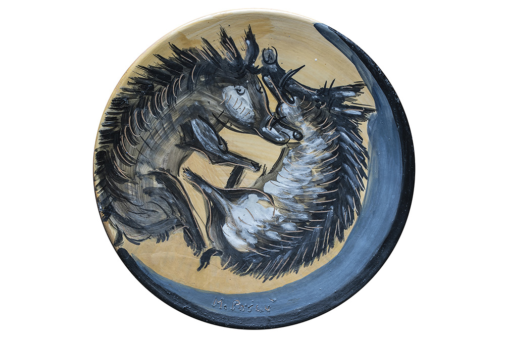 MARIO PORCU’ Piatto con cinghiali Ceramica dipinta, d 35 cm Firma incisa...