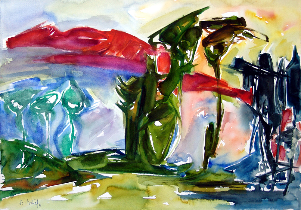 Philippe Artias 1912, Feurs (Francia) - 2002, Numana (An) - [Francia] senza titolo acquerello su carta 50x70 cm firma dell'artista in basso a sinistra certificato di provenienza garantita Picenum