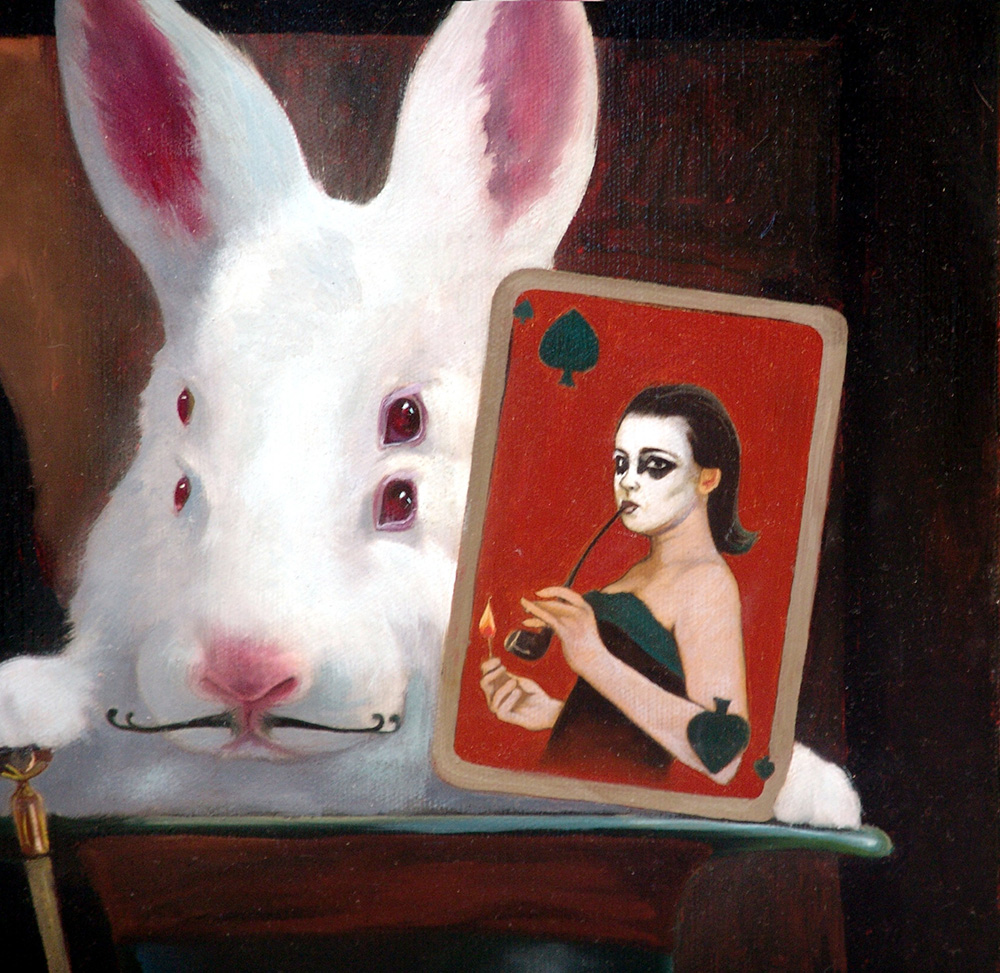 Alexandru Ciobanu 1988, Dubosaria - [Moldavia] Schrödinger’s rabbit olio su tela 40x30 cm 2016 firma dell’artista sul retro certificato di autenticità dell’artista