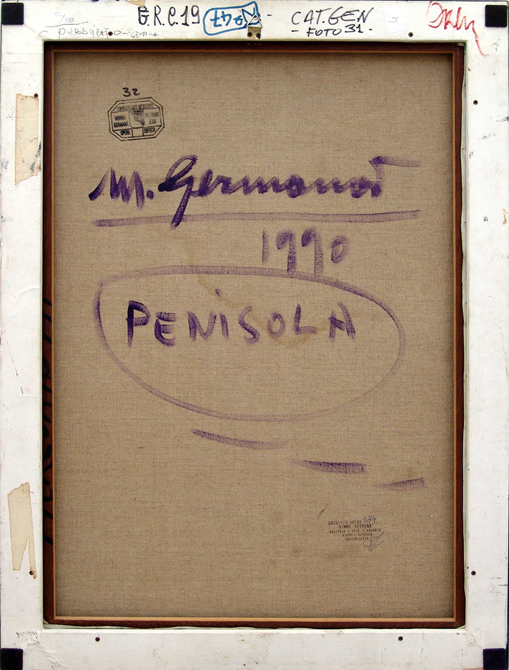 certificato di autenticità dell’Archivio Generale di Mimmo Germanà di Milano con numero di repertorio 31; opera pubblicata nel catalogo "Germanà" a cura di Tommaso Trini, Prearo Editore