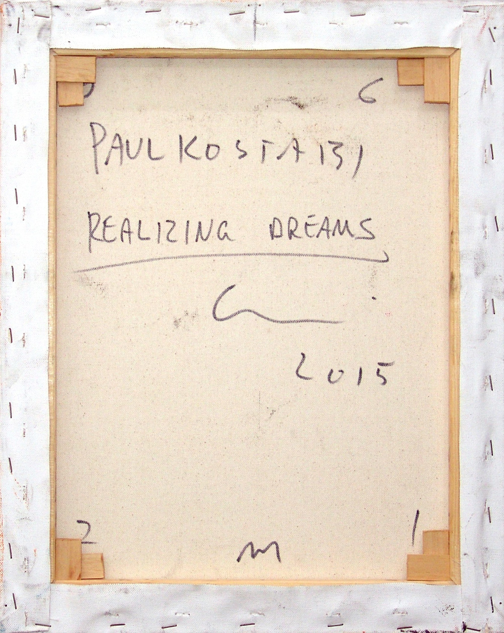 Paul Kostabi 1962, Whittier (California) - [USA] Realizing dreams olio e acrilico su tela 50x40 cm 2015 firma dell’artista in basso al centro e sul retro certificato di autenticità firmato dall’artista