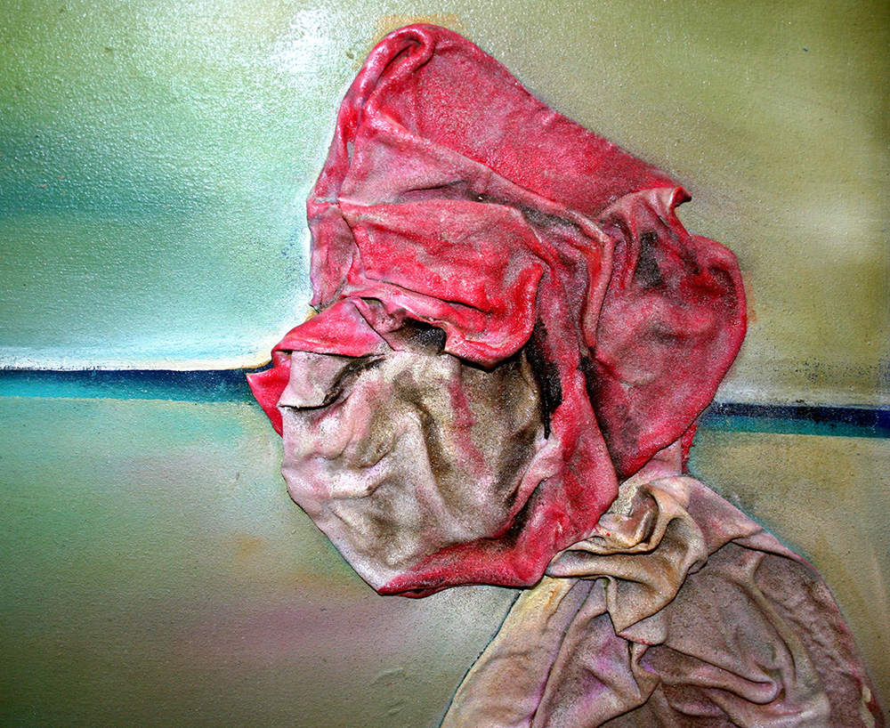 Roberto Lazzarini 1951, Massarosa (Lu) - [Italia] Cappuccetto rosso olio e stoffa su tela 120x60 cm 2012 firma dell’artista sul retro certificato di autenticità firmato dall’artista