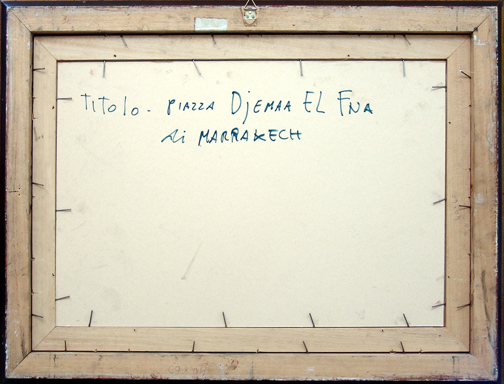 Salvatore Magazzini 1955, Pistoia (Pt) - [Italia] Piazza Djemaa El Fna di Marrakech olio su tavola 40x60 cm firma dell'artista in basso a destra e sul retro; opera con cornice certificato di provenienza garantita Picenum