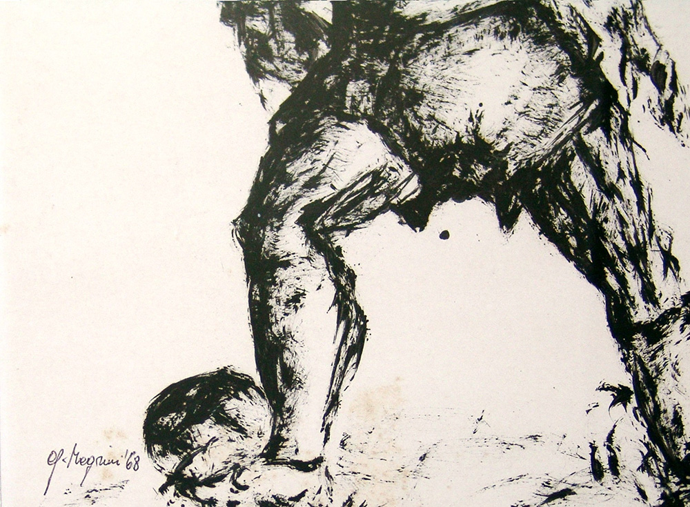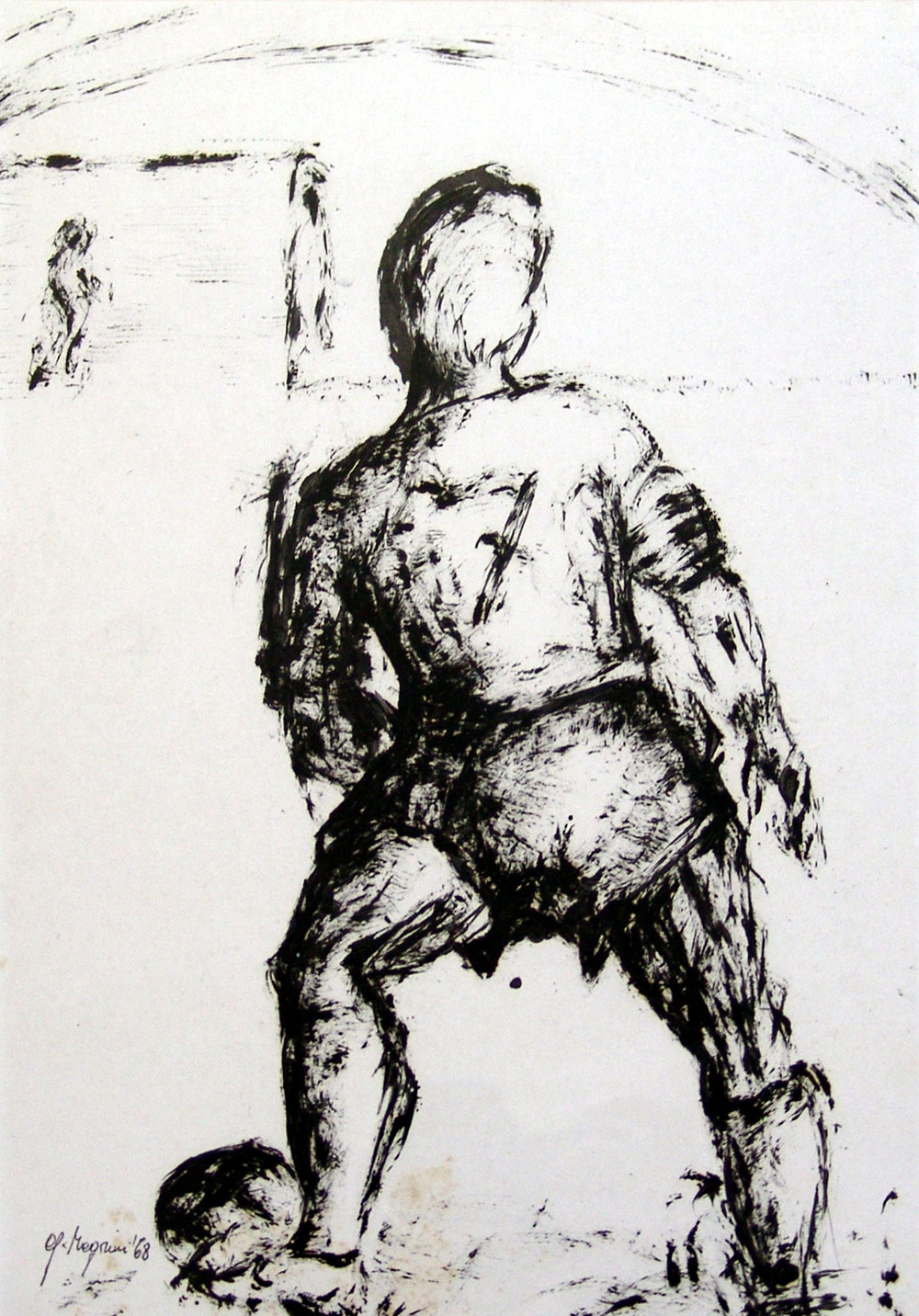 Giannetto Magrini 1938, Jesi (An) - [Italia] Calciatore inchiostro su carta 35x25 cm 1968 firma dell’artista in basso a sinistra; opera con cornice certificato di autenticità dell’artista