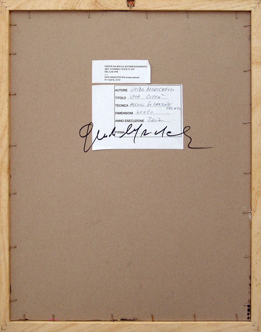 Guido Morichelli 1942, Cingoli (Mc) - [Italia] Una città acrilico su carta telata 50x40 cm 2007 firma dell’artista in basso a destra e sul retro; opera con cornice certificato di autenticità dell’artista