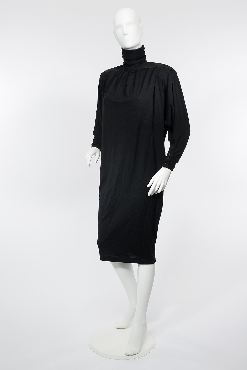 THIERRY MUGLER Vestito oversize in maglina di lana nera con inserti in suede (tg M) (difetti)