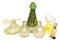 Lotto composto da sei bottiglie di diversa epoca e forma in vetro e opaline...