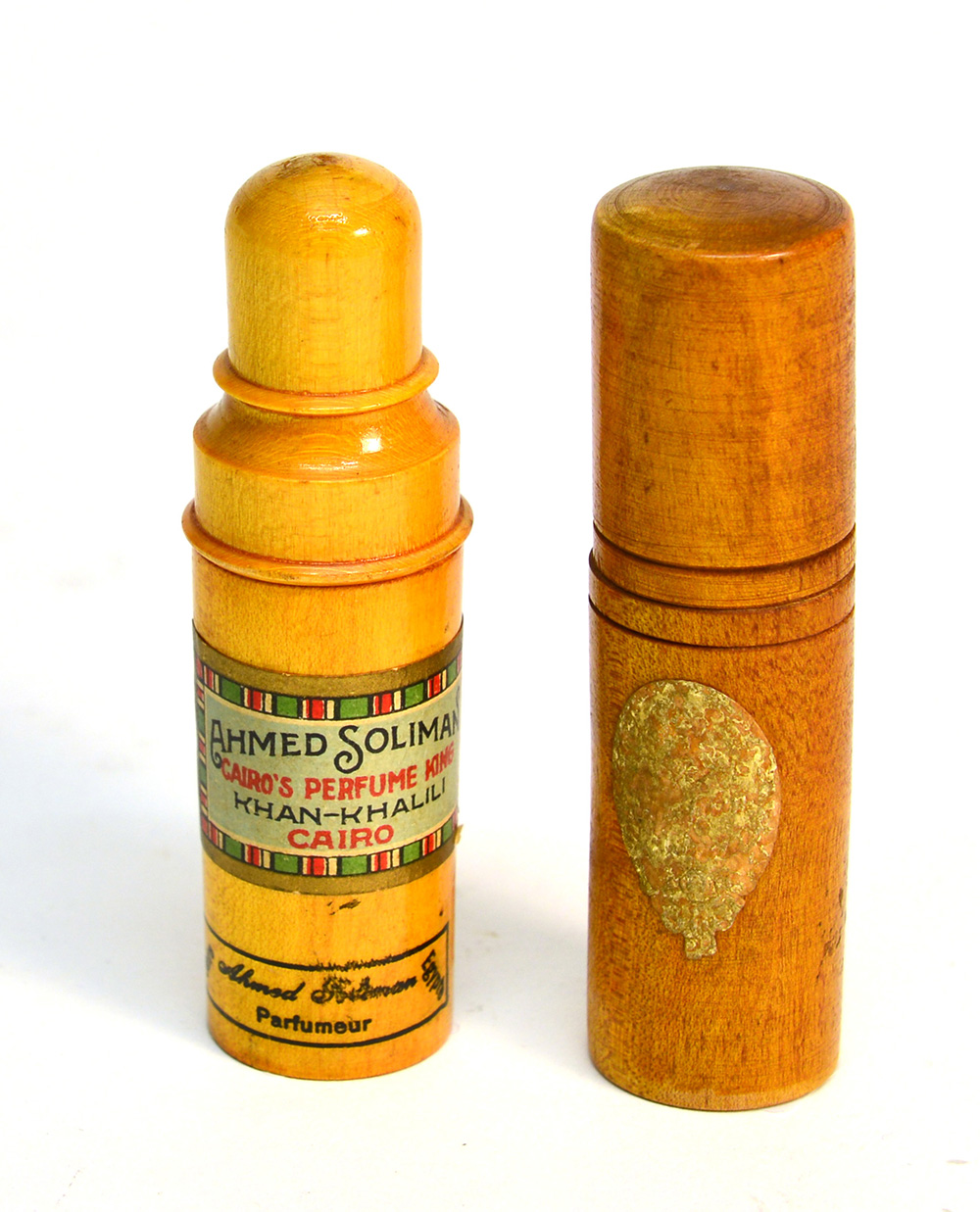 Lotto composto da due portabottigliette in legno tornito una con etichetta cartacea Ahmed Soliman Cairo