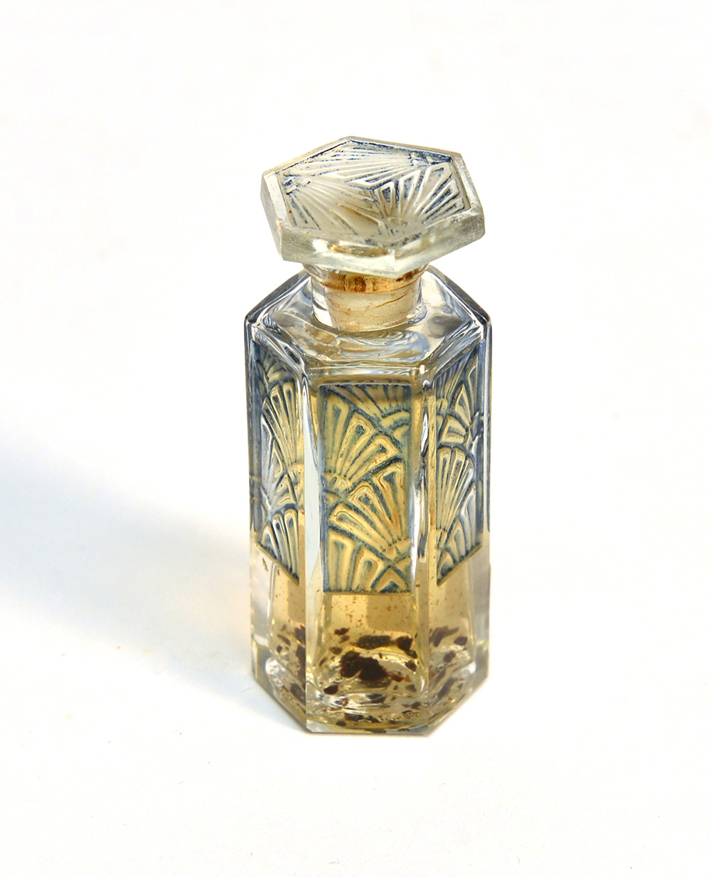 LALIQUE bottiglia portaprofumo di forma esagonale decorato a motivi...