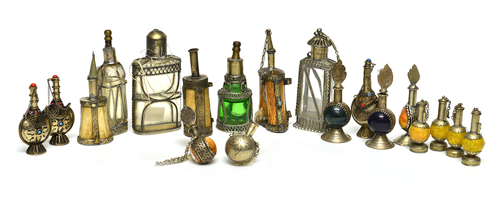Lotto di diciannove contenitori porta profumo e porta kajal dellíarea...