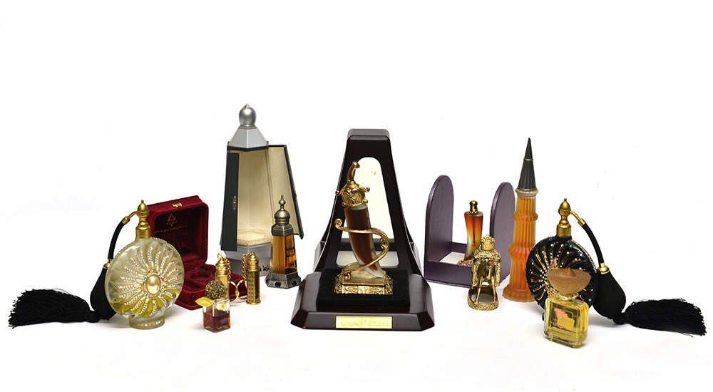 Lotto di dieci bottiglie di essenze e colonie orientali di cui alcune in...