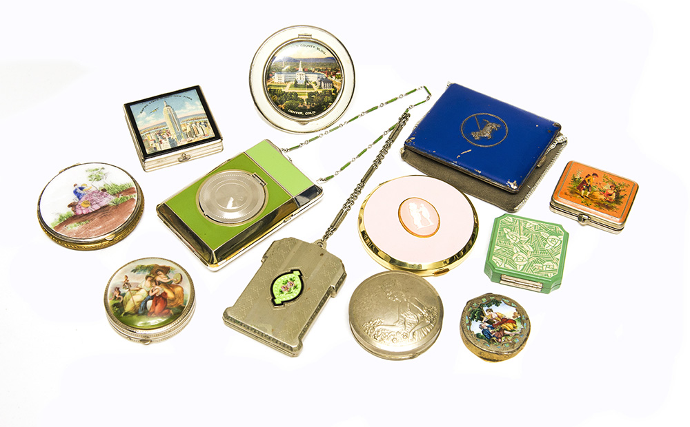 NACON, MARATHON, CARA MIA, TERRI, NOCIDA E ANONIMI Lotto di dodici fra vanity cases e portacipria di forme dimensioni e colori diversi alcuni rifiniti con smalti e miniature o raffigurazioni di citt‡ americane, uno con astuccio (difetti) NACON, MARATHON, CARA MIA, TERRI, NOCIDA E ANONIMI Lotto di dodici fra vanity cases e portacipria di forme dimensioni e colori diversi alcuni rifiniti con smalti e miniature o raffigurazioni di citt‡ americane, uno con astuccio (difetti) Lot comprising twelve compacts with different decorations (defects)