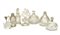 Lotto di sette bottiglie in vetro e cristallo, due decorate in rilievo a...