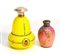 Lotto composto da due bottigli portaprofumo in vetro giallo e rosato decorate...