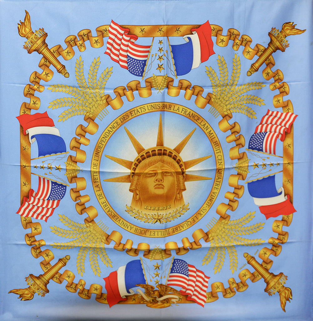 HERMES Foulard in seta "Liberty", Joachim Metz 1984 su fondo azzurro (lievi...