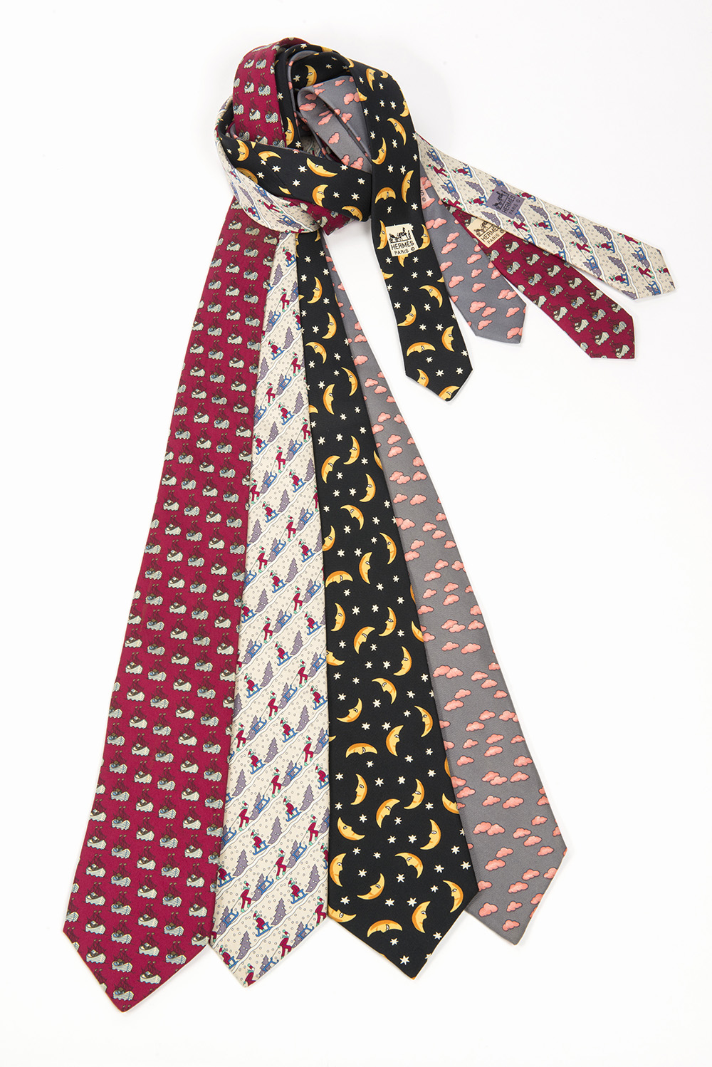 HERMES Lotto di quattro cravatte in seta di diversi colori (lievi difetti)