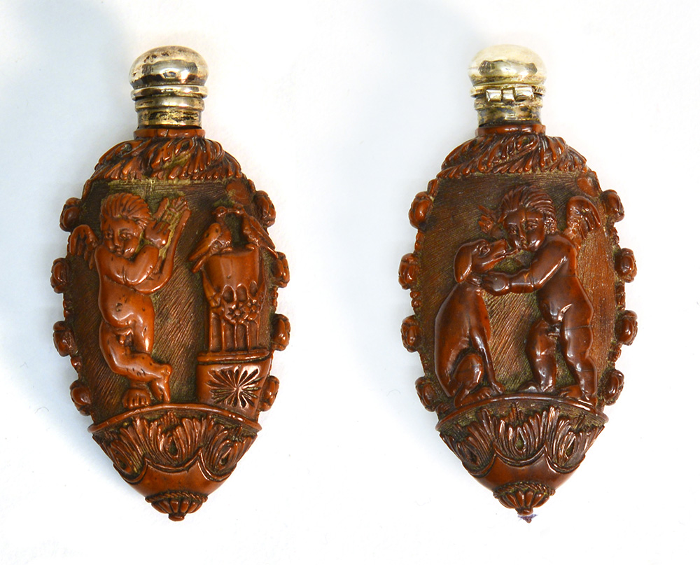 Portaprofumo intagliato a scene classiche con putti ed animali, secolo XIX