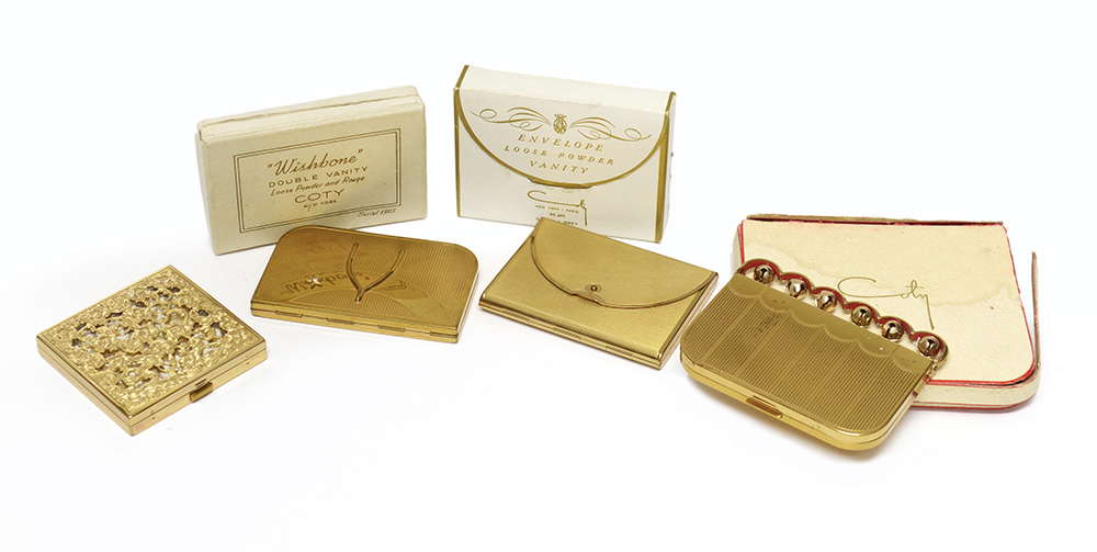 COTY Lotto di due vanity cases, di cui un ìJingle Bellsî e due portacipria, tre in confezioni originali (lievi difetti) COTY Lotto di due vanity cases, di cui un ìJingle Bellsî e due portacipria, tre in confezioni originali (lievi difetti) Lot comprising four compacts of which one "Jingle Bells", three in original boxes (minor defects)