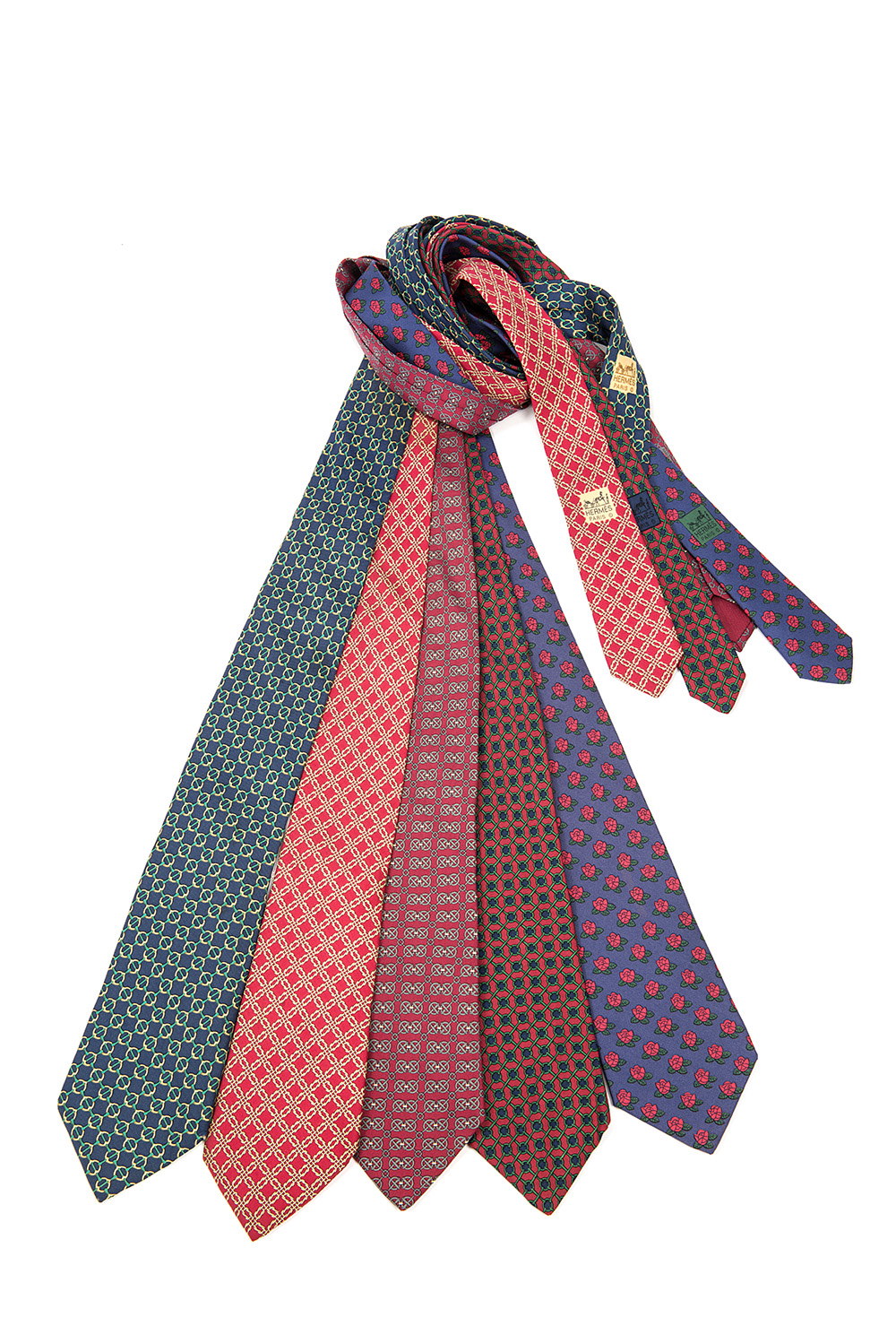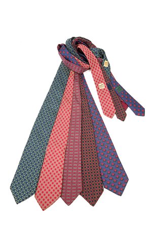 HERMES Lotto di cinque cravatte in seta di diversi colori