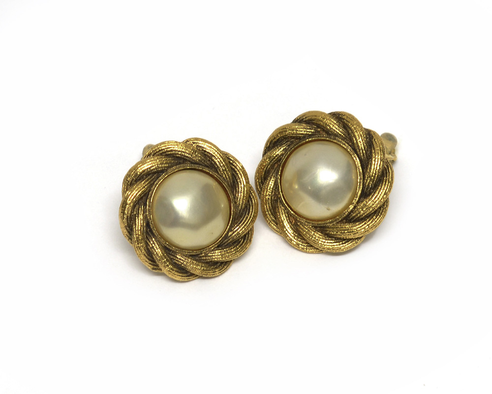 CHANEL Orecchini a clips con perla fancy centrale contornata da metallo color oro