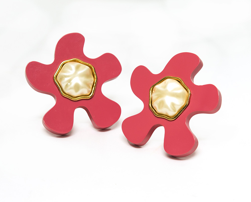 CHANEL Orecchini a clips a forma di fiore stilizzato con perla fancy centrale