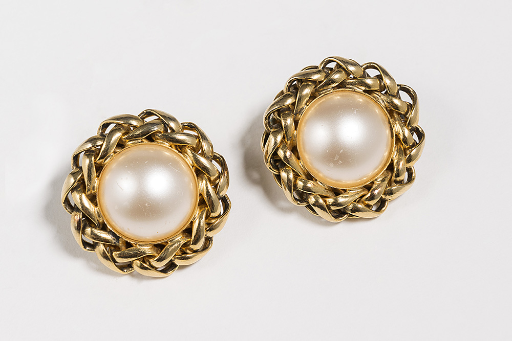 CHANEL Orecchini a clips con perla fancy centrale contornata da traccia in metallo color oro