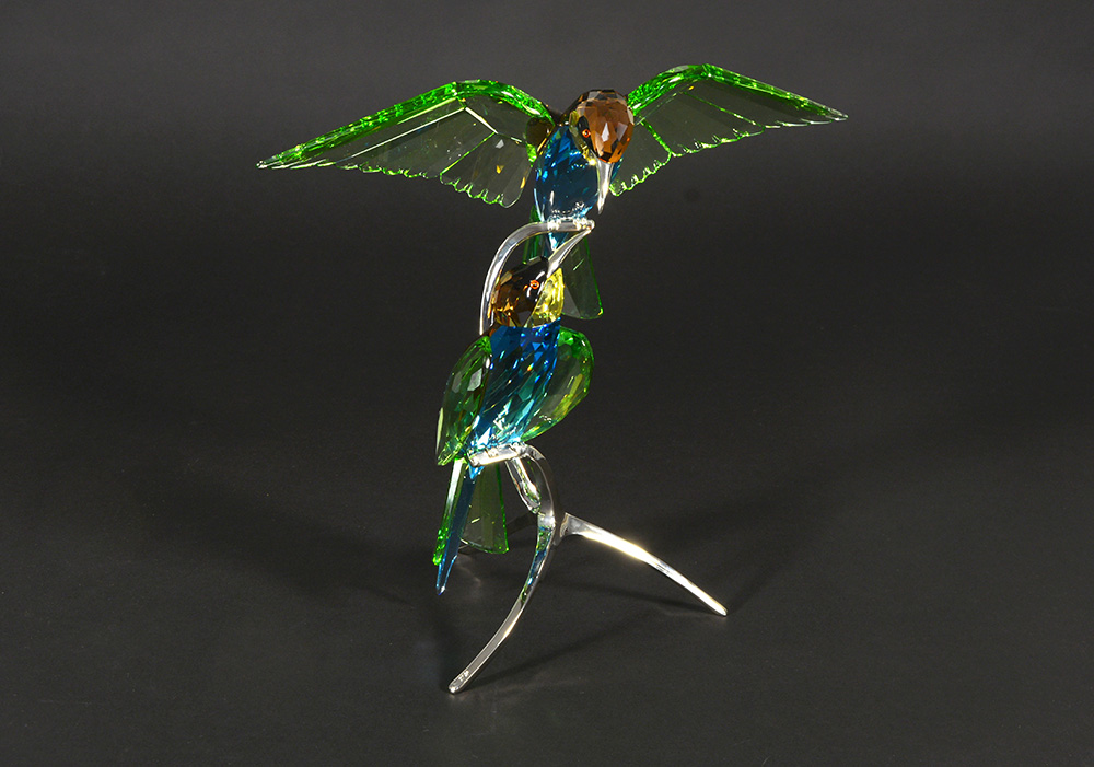 SWAROVSKI, "Birds", scultura in cristallo sfaccettato e ramo in metallo (d cm...