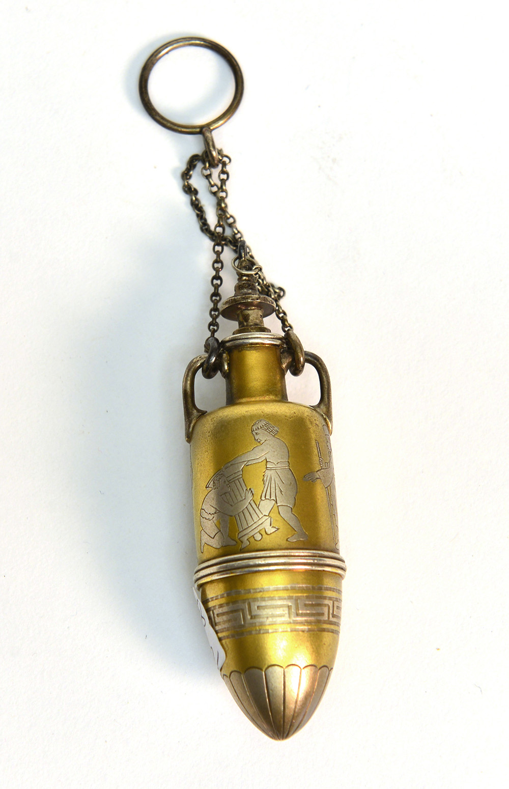 TIFFANY & Co - Ch‚telaine in metallo e argento inciso a figure, numerata...