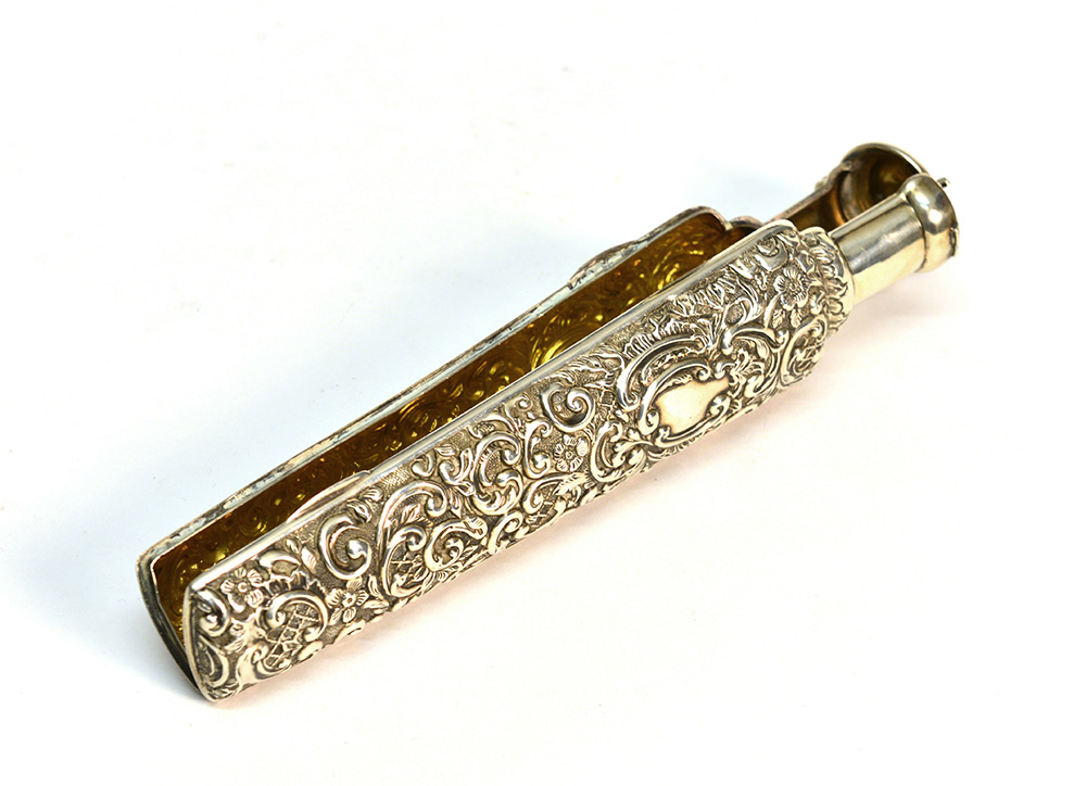 Porta bottiglia di profumo in argento con interno in vermeille, lavorazione a...