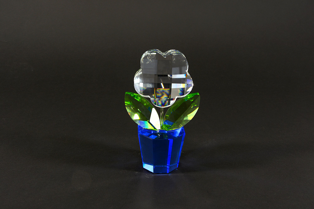 SWAROVSKI, "Fiore", scultura in cristallo sfaccettato e metallo (h cm 18,5), in custodia originale