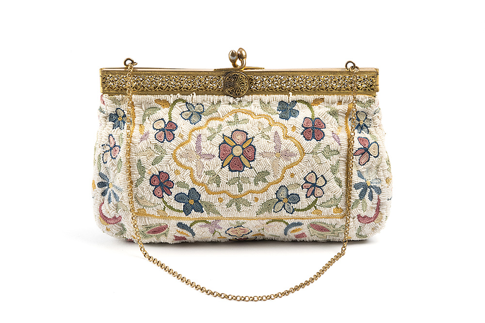 Borsetta da sera ricamata in microperline multicolore a fiori con chiusura e...