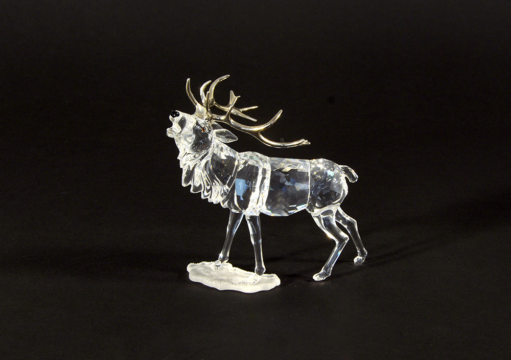 SWAROVSKI, "Renna", scultura in cristallo sfaccettato con applicazioni in...