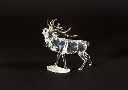 SWAROVSKI, "Renna", scultura in cristallo sfaccettato con applicazioni in metallo (h cm 14), allegato certificato di autenticit‡ e custodia originale.