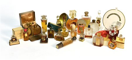 COTY, SCHIAPPARELLI, JEAN DESPEREZ, SANTA MARIA NOVELLA, JOYA E ANONIMIñ Lotto di 22 bottiglie di profumo e eau de toilette dí epoca, di dimensioni e fatture diverse