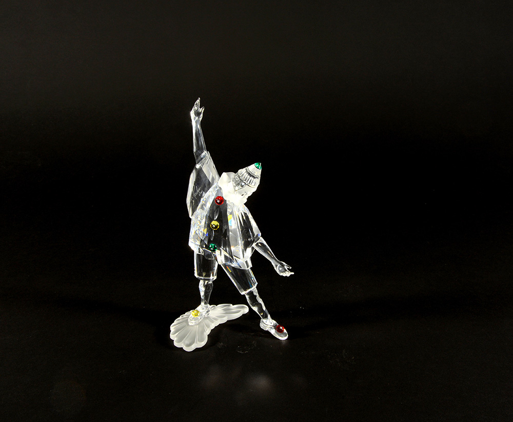 SWAROVSKI, "Pierrot", scultura in cristallo sfaccettato (h cm 20), in...