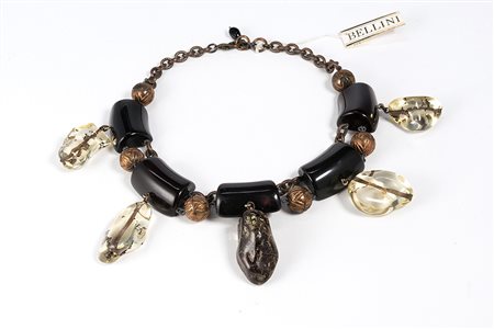 PAOLO BELLINI Collier in catena metallica brunita con elementi in galalite...