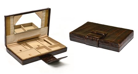 Porta oggetti/gioie in coccodrillo marrone con chiusura ad agenda (difetti e...