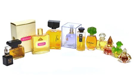 REVILLON, ROBERT PIGUET, JACQUES FATH, GUERLAIN, LANVIN, GUY LAROCHE, GRES Lotto di undici bottiglie di profumo e acqua di colonia piene e non di diverse forme e dimensioni di cui alcune in confezione originale