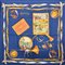 HERMES Foulard in seta "Trompe de Chasse", Henri de Linares su fondo blu (lievi difetti)