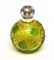 Manifattura inizio sec. XX bottiglia portaprofumo di forma bombata in vetro pagliesco decorato nei toni del verde a fiori e foglie tappo in argento sbalzato a finta corona ( h. cm. 10)
