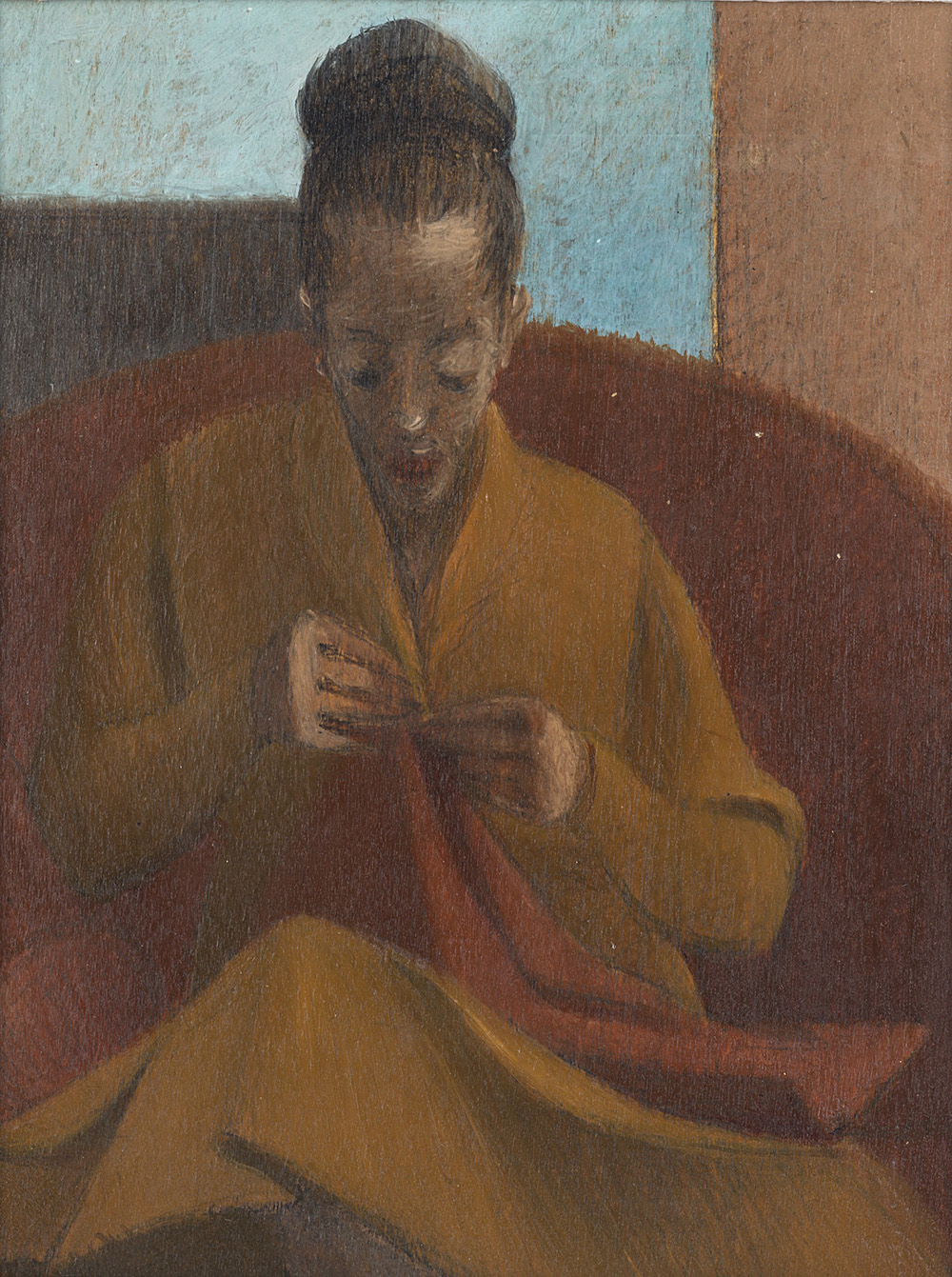 Antonio Calderara (Abbiategrasso 1903 - Vaciago 1978) "Donna che cuce" 1951