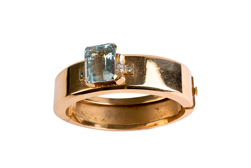 Lotto 36 | Bracciale rigido anni 60 con acqua marina taglio smeraldo .Acquamarina cti....