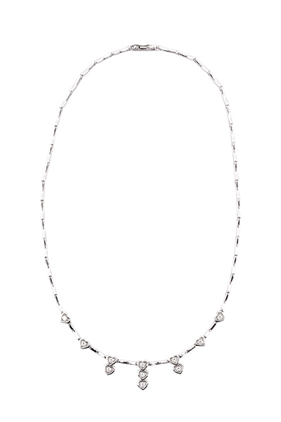 Collana con cuoricini pendenti di brillanti.Oro 18 Kti Brillanti cti 0,35 Peso gr. 15,10