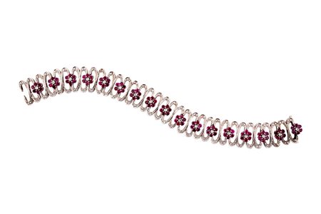 Bracciale in oro bianco brillanti e rubini . Oro 18 Kti. Diamanti cti.0,70...