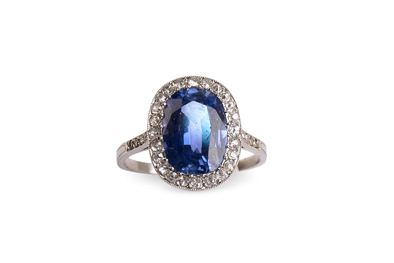 Lotto 78 | Anello con zaffiro ceylon e diamanti. Zaffiro cti. 3 c.ca brillanti cti. 0,30...