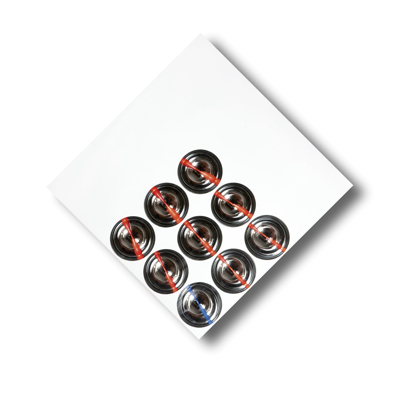 COSTALONGA FRANCO Venezia 1933 "OCDBAB" 2007 62,5x62,5 nove sfere su superficie di plexiglas Opera firmata, datata ed intitolata al retro Autentica e timbro dell'artista su fotografia