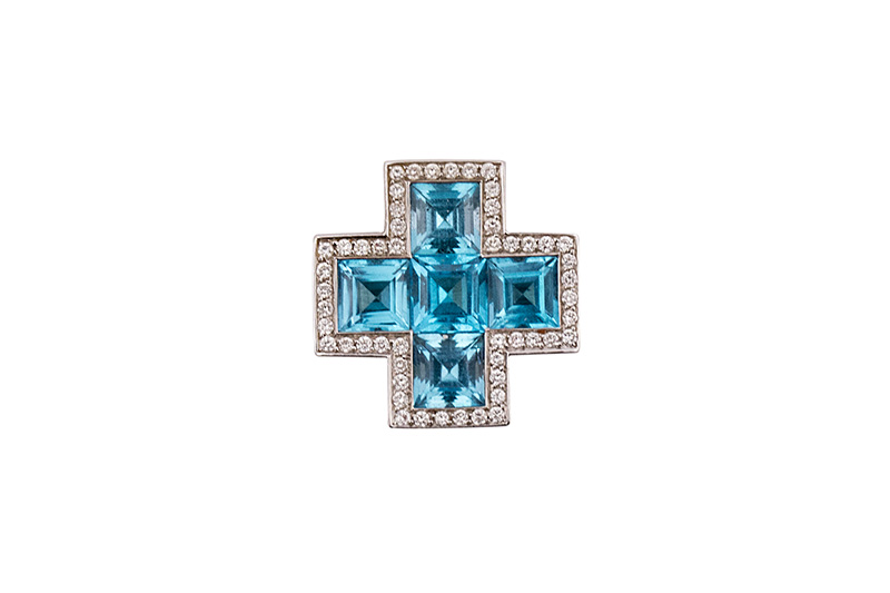 Croce quadrata con 5 pietre.Oro 18 Kti Brillanti cti 0,50 c.ca Peso gr. 13