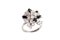 Anello con brillanti e zaffiri. Oro bianco 18 Kti con 5 zaffiri tagliati a navette e 22 brillanti cti. 2,20 c.ca Peso gr. 6,60. Misura 15