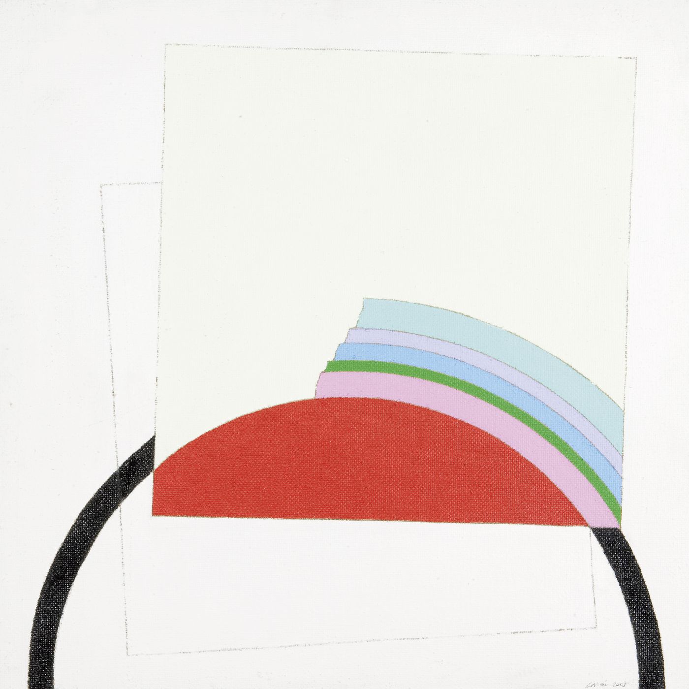 CARMI EUGENIO Genova 1920 "Asimmetria" 2005 60x60 acrilici e vernice su juta Opera firmata e datata in basso a destra e al retro Autentica dell'artista su fotografia Già Galleria l'Acquario, Giulianova (timbri al retro) Già Galleria Overtime Art, Forlì (etichetta al retro)